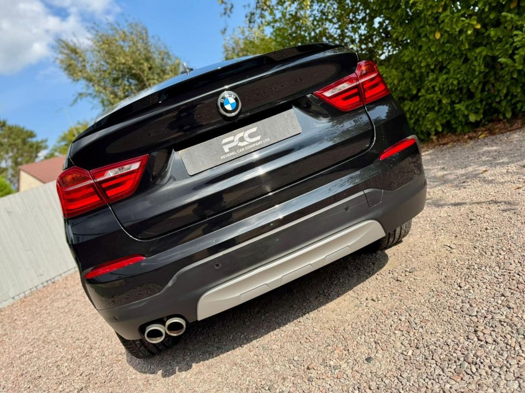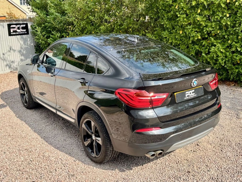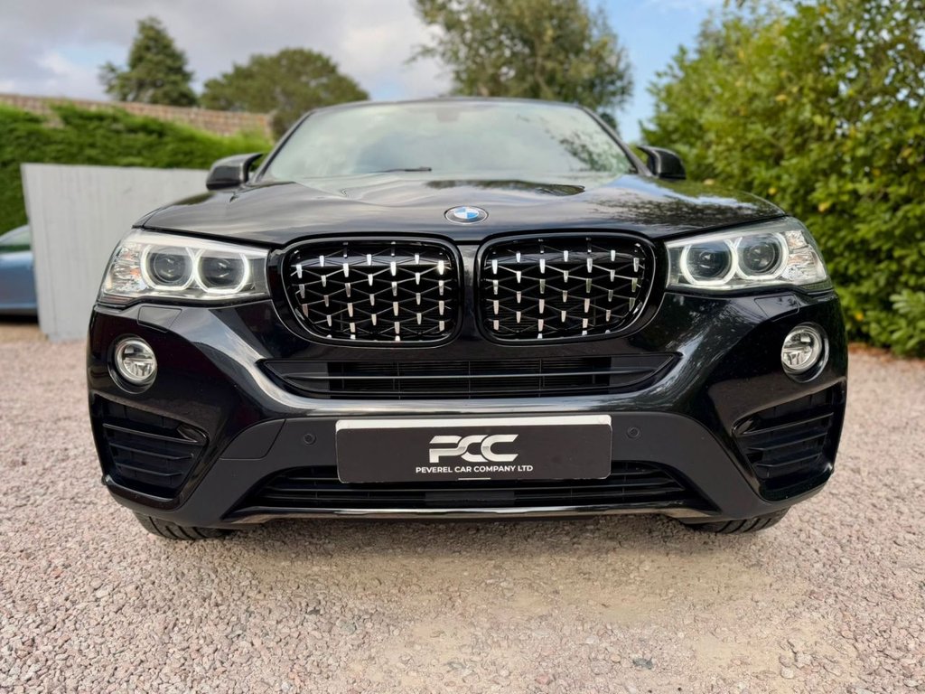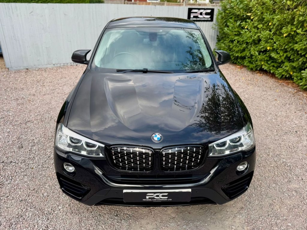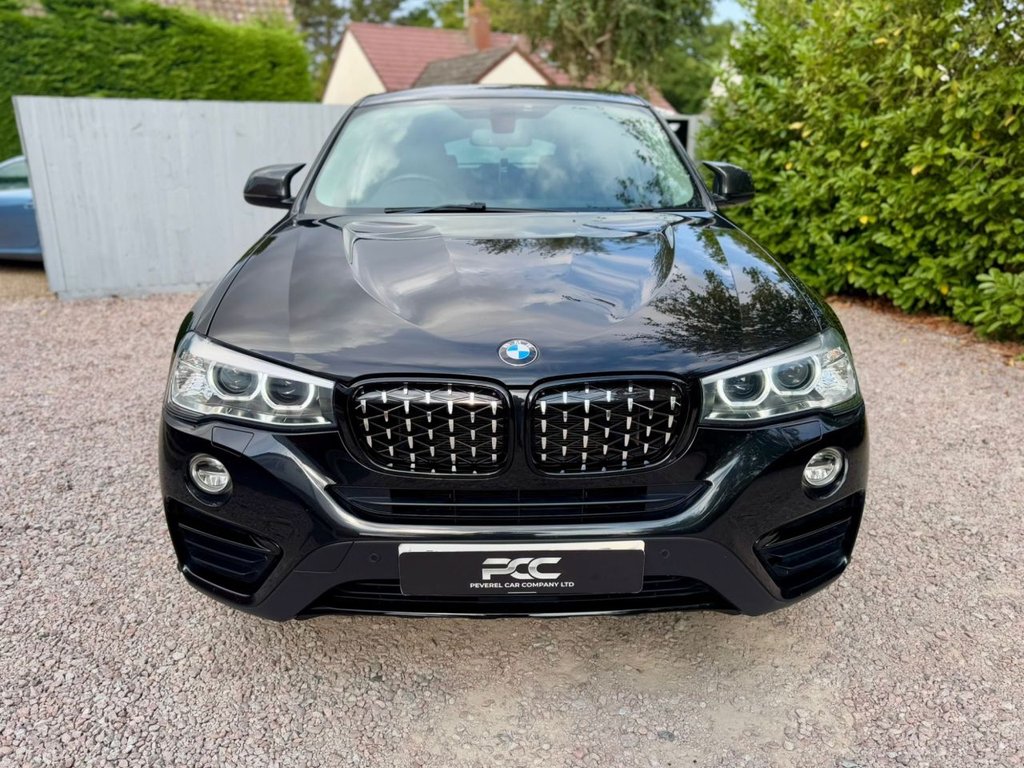 Peverel Car Company are pleased to present this outstanding 2017 BMW X4 3.0 30d X Line Auto xDrive, finished in sleek Sapphire Black Metallic with a luxurious Black Nevada Leather interior featuring Sports Seating. This car is further enhanced with Bespoke Features such as New Style Diamond Meteor Grilles, M4 Style Carbon Fibre Design Mirrors, Black Gloss Lower Front Splitter, Side Fins and Blades in Gloss Black, X4 M Performance Design Rear Spoiler in Gloss Black, Carbon Fibre Design Shark Fin and 19 inch Gloss Black Alloy Wheels. This car is presented in excellent condition throughout, this example has clearly been cherished. The BMW X4 30d diesel variant of the X4 line up delivers blistering performance thanks to its 3.0-litre turbo diesel engine producing 254bhp and 560Nm of torque. Combined with BMWs intelligent xDrive all-wheel-drive system and an 8-speed automatic gearbox, it offers an effortless yet thrilling driving experience in all weather conditions. With Euro 6 and start/stop technology, it also remains efficient and practical for everyday use. The bold coupe-SUV silhouette sets it apart on the road while maintaining SUV space and comfort. As an xLine model, this example comes extremely well specified with highlights including: BMW Satellite Navigation System, Front and Rear Parking Sensors, Bluetooth Connectivity, DAB Digital Radio, Heated Front Sports Seats, Automatic Climate Control Air Conditioning, Electric Power Operated Tailgate, Cruise Control, LED Headlights, Interior Ambient Lighting, Automatic Headlights On and Automatic Rain Sensor Windscreen Wipers, Leather Multifunction Sport Steering Wheel, BMW Connected Drive, 19-inch Gloss Black Sport Alloy Wheels, Privacy Glass Tinted Windows, ISOFIX Child Seat Anchorage Points to the Rear Seats, 60 / 40 Split Folding Rear Seats, The Stunning Black Dakota White Leather Interior adds a Bespoke and Premium touch that lifts the cabin above its rivals. This vehicle is supplied Fully HPI Clear with a Full Service History, 2 Keys, a Fresh 12 Months MOT, 3 Months RAC Warranty & 12 Months RAC Breakdown Cover. Part Exchanges Welcome & Additional Warranty Options are also available. Multiple Award Winning & Heavily Customer Focused Company, Rated a 5 Star Dealer by our Customers. Buy with confidence.