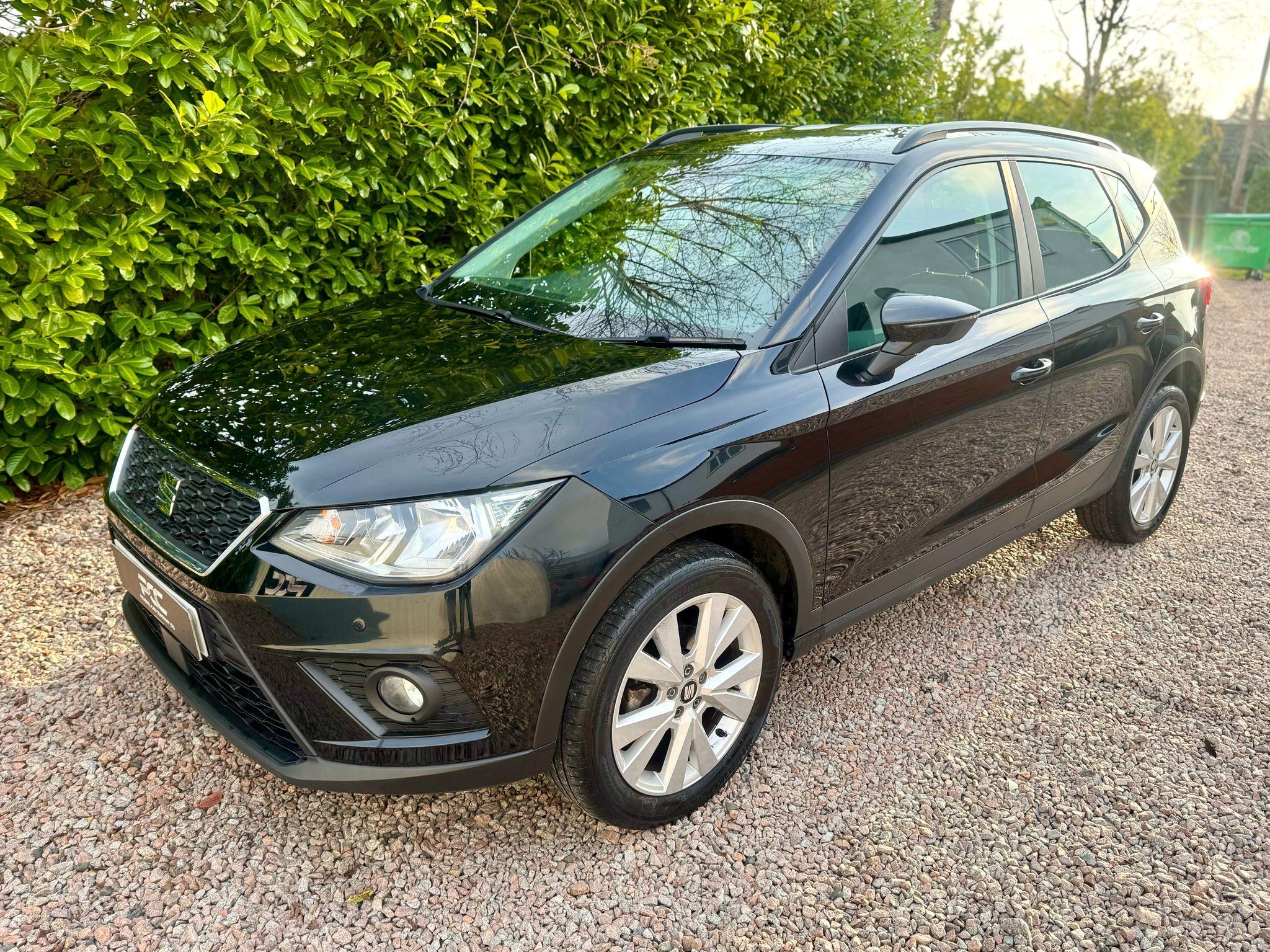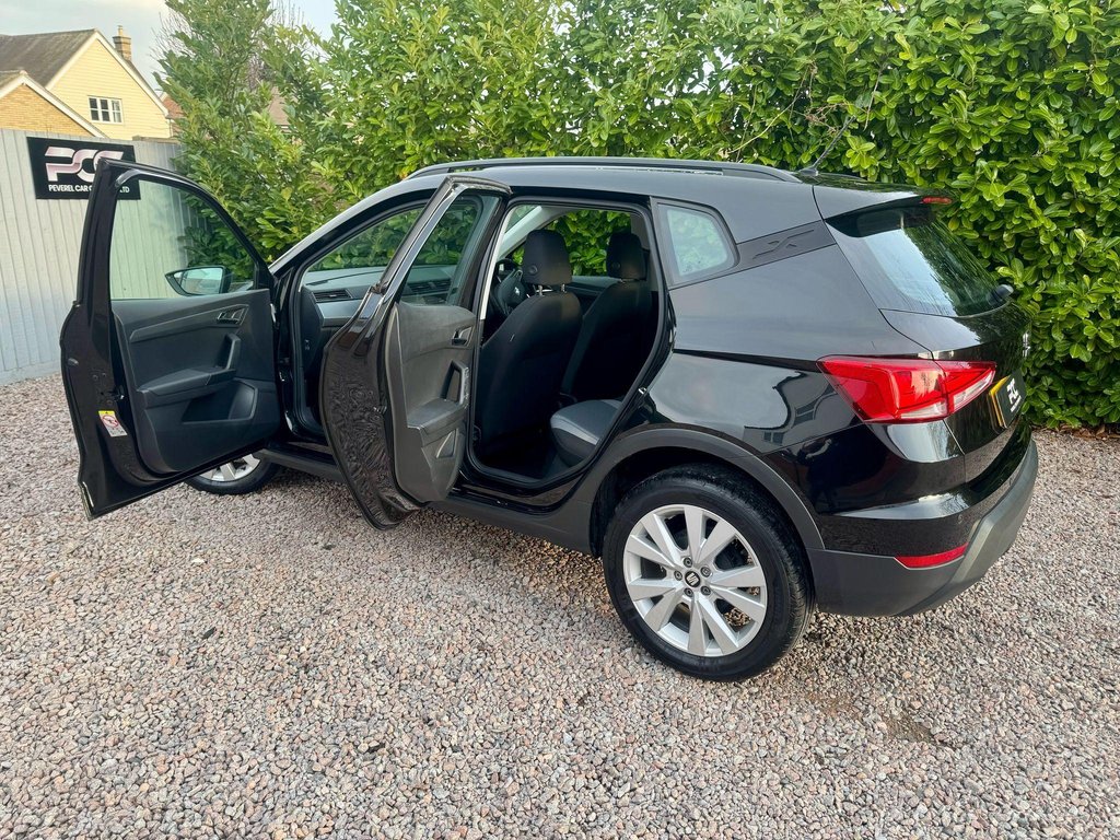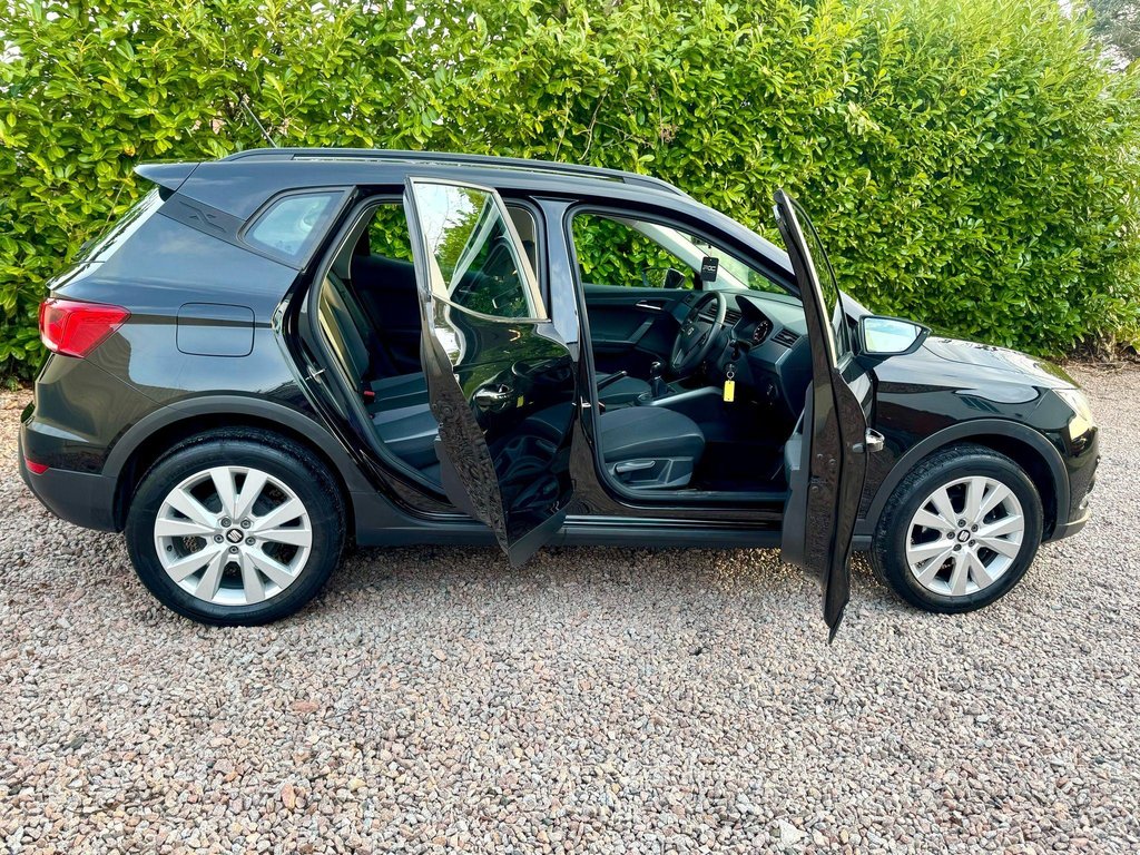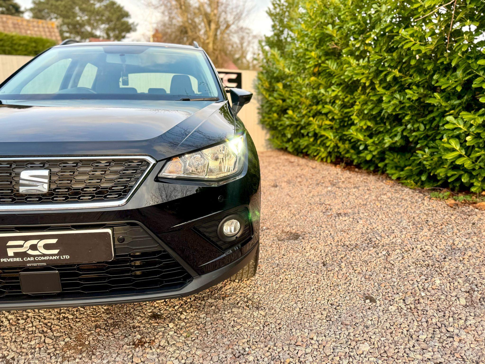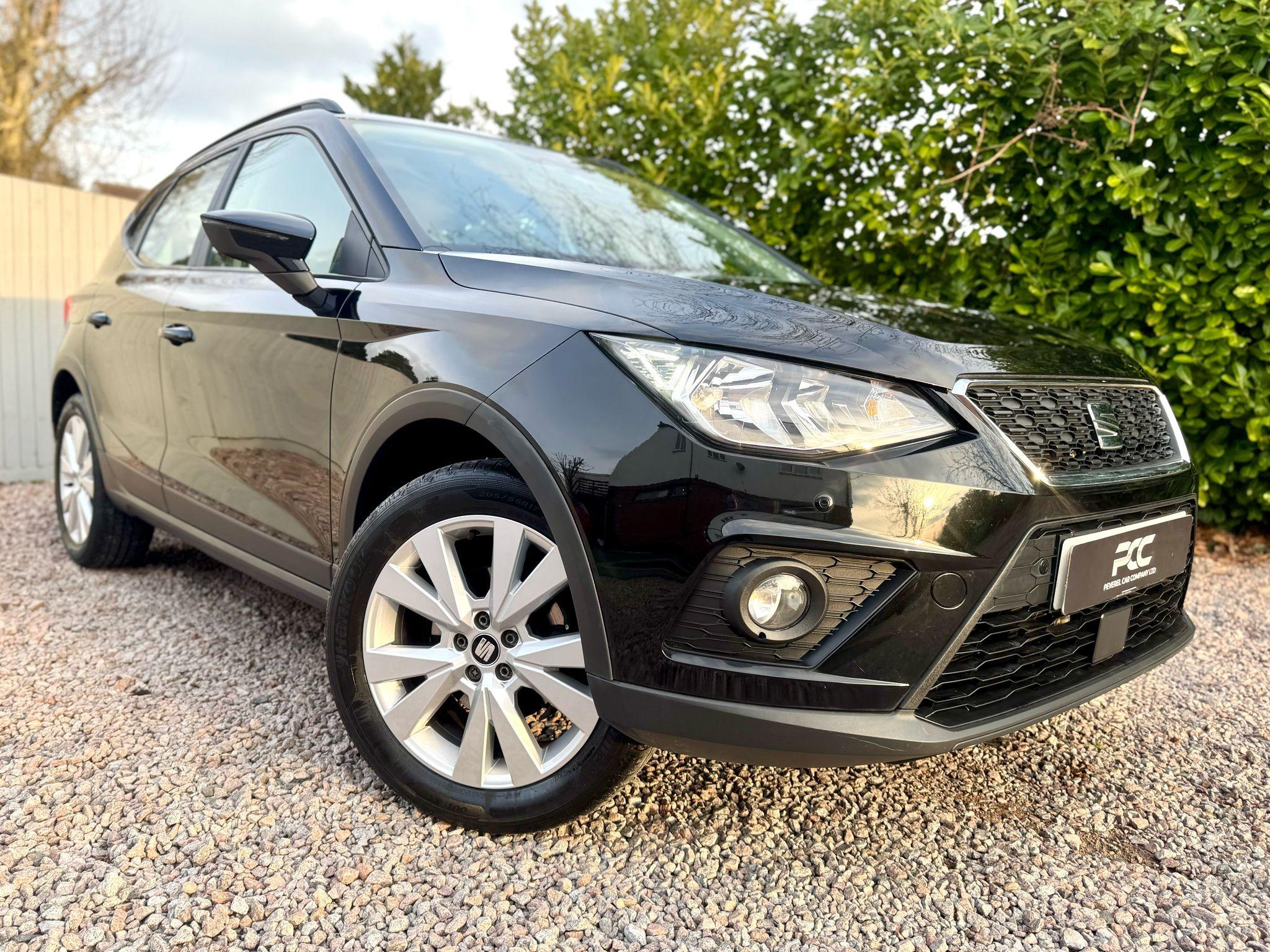 Peverel Car Company are pleased to present this stunning, ULEZ Compliant, Midnight Black finish, SEAT Arona 1.0 TSI. With immaculate 17" Dynamic Alloy Wheels. Inside the roomy cabin, you'll find a classy interior, with a well finished cloth interior. The SEAT Arona, has been a popular choice among those looking an easy to drive, higher up driving position, hatchback crossover. Utilising it's punchy 1.0 TSI engine, this petrol powered Arona progresses through the rev range smoothly and offers enviable fuel economy! Paired to it's 6 speed manual transmission, that offers a rewarding gear change, it makes for an easy drive. This SEAT Arona specification includes: Air Conditioning, Front & Rear Parking Sensors, USB Media with Android Auto/Mirror Link, Multi Function Steering Wheel incorporating controls for Bluetooth Telephone Connectivity, Voice Control, DAB Digital Radio, 6 Speed Manual Transmission, Cruise Control, Speed Limiter, ISOFIX Child Seat Anchorage Points, Front Fog Lights with Cornering function, 60/40 Split Rear Seat Configuration, Extendable Double Height Boot Floor, Roof Rails and much more! This Arona comes fully HPI clear with 2 Key, Service History a Fresh 12 Months MOT, 3 Months RAC warranty and 12 months RAC Breakdown Cover. Part Exchanges welcome & Additional Warranty options are also available. Multiple Award Winning & heavily customer focused company + Rated a 5 Star dealer by our customers. Buy with confidence.
