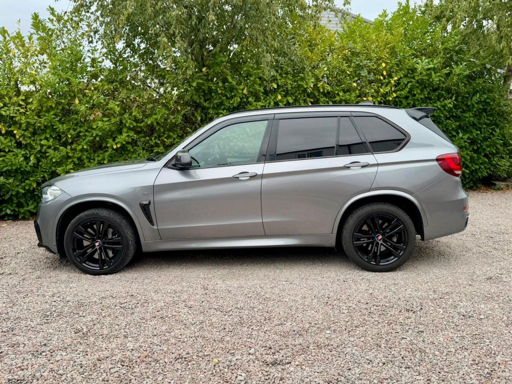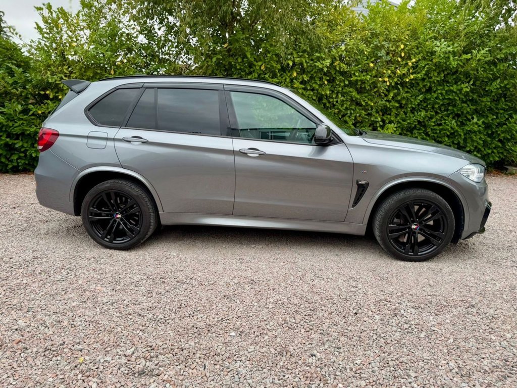Peverel Car Company are pleased to present this outstanding 7 Seat 2015 BMW X5 3.0 M50d M Auto xDrive, finished in sleek Space Grey Metallic with a luxurious Contrasting Black Nevada Leather Upholstery. This car is further enhanced with Bespoke Features such as New Style Diamond Meteor Grilles in Gloss Black with Silver Accents, X5M Performance Gloss Black Front Splitter, M3 Style Carbon Fibre Design Mirrors, Carbon Design Shark Fin, Carbon Fibre Design Oettinger Style Rear Spoiler in Gloss Black, M Sport Exclusive Alloy Wheel Centre Caps, Gloss Black M Performance Rear Diffuser, X Drive Carbon Fibre Side Vents and Front Canards in Gloss Black. This car is presented in beautiful condition throughout, this example has clearly been cherished. The BMW X5 M50d is the range-topping diesel variant of the X5 line up and delivers blistering performance thanks to its 3.0-litre twin-turbo diesel engine producing 381bhp and 739Nm of torque. Combined with BMWs intelligent xDrive all-wheel-drive system and an 8-speed automatic gearbox, it offers an effortless yet thrilling driving experience in all weather conditions. With Euro 6 and start/stop technology, it also remains efficient and practical for everyday use. The bold SUV silhouette sets it apart on the road while maintaining SUV space and comfort. As an M model, this example comes extremely well specified with highlights including; BMW Professional Satellite Navigation, Opening Panoramic Glass Sunroof, Front and Rear Parking Sensors, Reversing Camera, Bluetooth Connectivity, DAB Digital Radio, Heated Electric Front Sports Seats, Automatic Climate Control Air Conditioning, Power Operated Tailgate, Power Operated Steering Column, Cruise Control with Speed Limiter, LED Headlights, Automatic Lights On, Automatic Rain Sensor Windscreen Wipers, Leather Multifunction M Sport Steering Wheel, 20-inch Gloss Black M Sport Alloy Wheels, Privacy Glass Tinted Windows. The luxurious Black Leather Interior adds a Premium touch that lifts the cabin above its rivals. This vehicle is supplied Fully HPI Clear with a Full Service History, 2 Keys, a Fresh 12 Months MOT, 3 Months RAC Warranty & 12 Months RAC Breakdown Cover. Part Exchanges Welcome & Additional Warranty Options are also available. Multiple Award Winning & Heavily Customer Focused Company, Rated a 5 Star Dealer by our Customers. Buy with confidence.